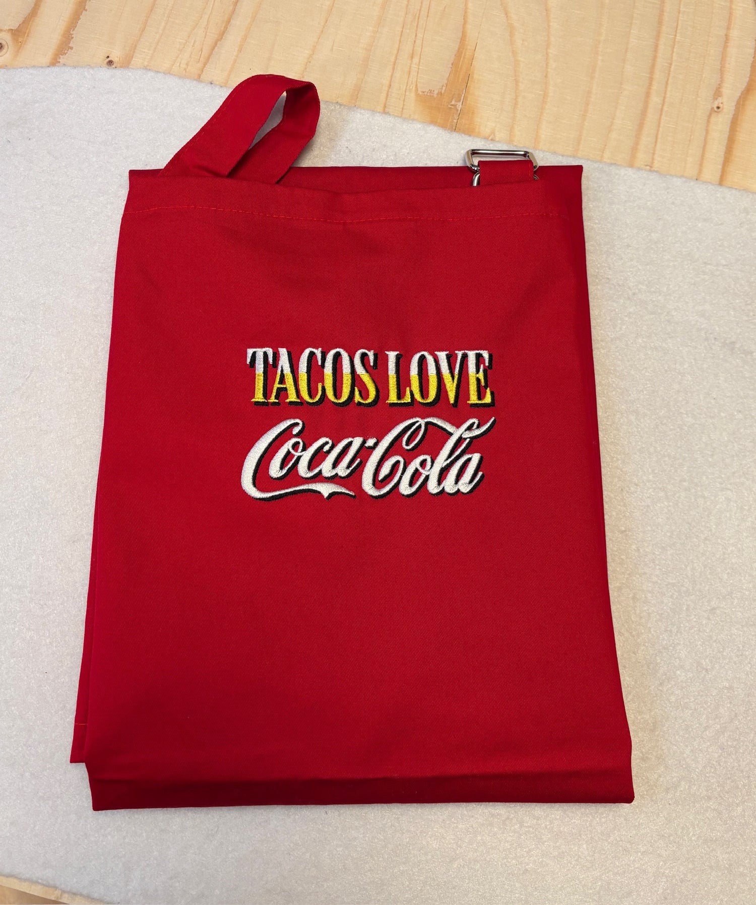 Fina förkläden med världens kanske mest brodyrvänliga logotyp: Coca-Cola