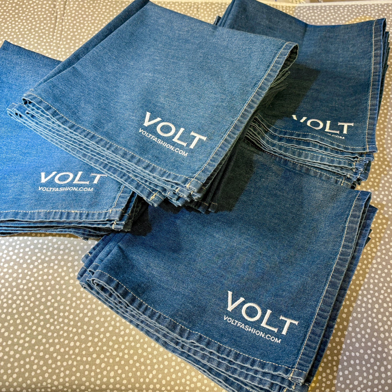 Brody på jeans i samband med kundevent i butiken på Drottninggatan i Stockholm. Namn, initialer och symboler i färger som komplementerar jeansen. Mycket uppskattat.