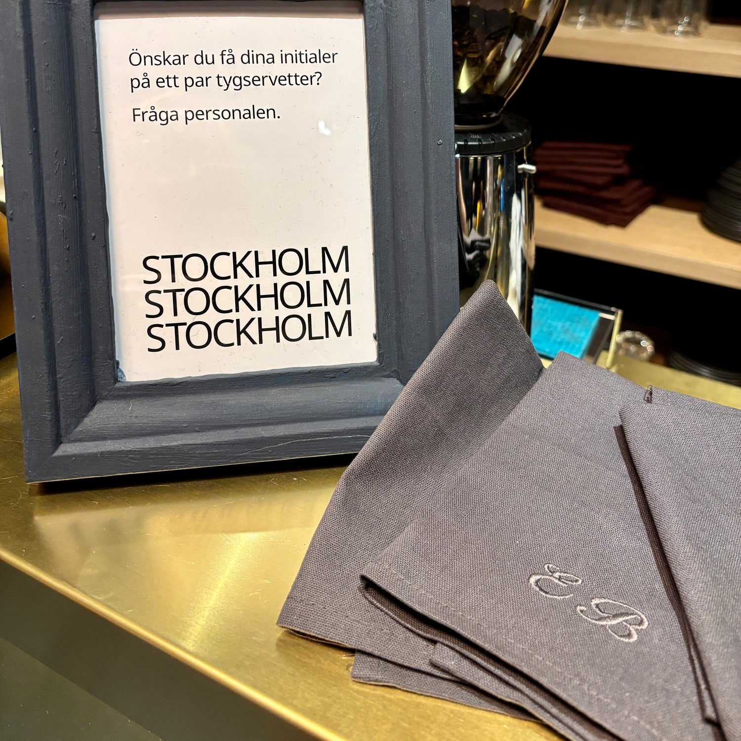 Brodyr på servetter till kunder i samband med IKEAs lansering av sin Stockholm-kollektion 2025